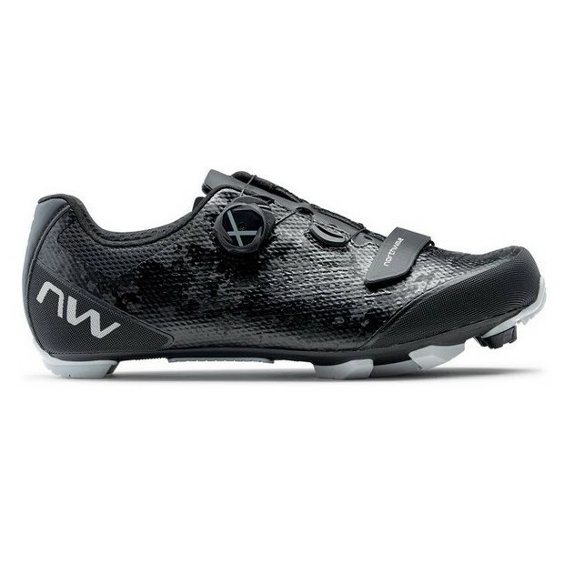 Les chaussures Northwave Razer 2 ont été spécifiquement conçues pour le Cross-Country. Elles sont composées d’une empeigne Biomap Unibody avec du mesh pour une meilleure ventilation et d’une semelle extérieure XC 10 en composite, garantissant un excellent transfert de puissance et une bonne accroche sur sol glissant. Des renforts thermocollés en TPU sur la pointe et le talon offrent une bonne protection contre l’abrasion pour une longévité accrue. Ces chaussures sont équipées d’un système de fermeture avec une molette SLW3, qui permet un ajustement millimétrique s’adaptant parfaitement à la forme de vos pieds. Ce système est complété par une bande Velcro sur le cou-le-pied.
