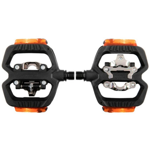 La face automatique repose sur une mécanisme au standard micro-cale, compatible avec des cales SPD. Ce mécanisme est commun à l’ensemble de la gamme et permet un chaussage et un déchaussage simple et sécurisant. Le système de réglage permet d’ajuster la tension de 5 à 10 N.m.. Les pédales sont livrées avec des cales Easy, pour un chaussage 30 % plus facile et un déchaussage multidirectionnel plus naturel, offrant la possibilité d’un mouvement combinant rotation et traction.